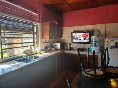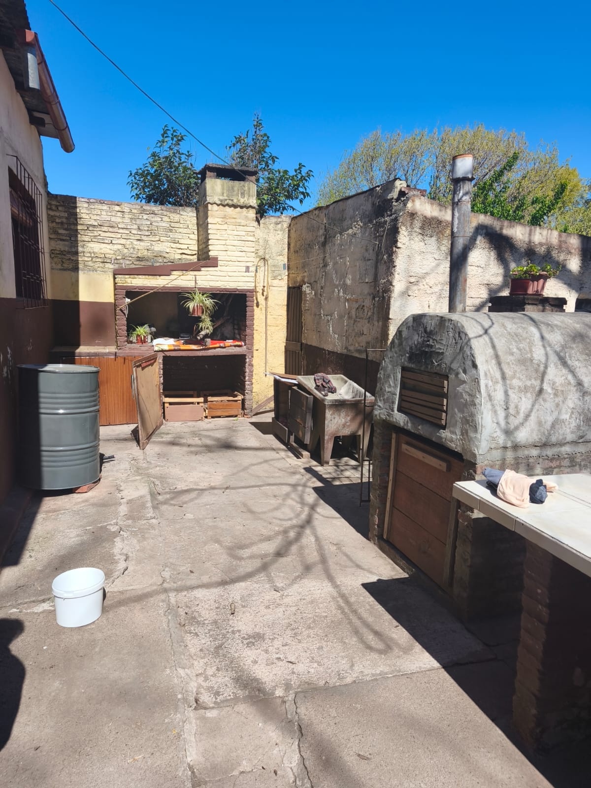 Casa con techo de planchada ,y en buenas condiciones de mantenimiento de 4 dormitorios, living con estufa a leña, cocina comedor, baño, patio Portland con parrillero, horno pizzero, y galponcito, y patio verde al fondo.